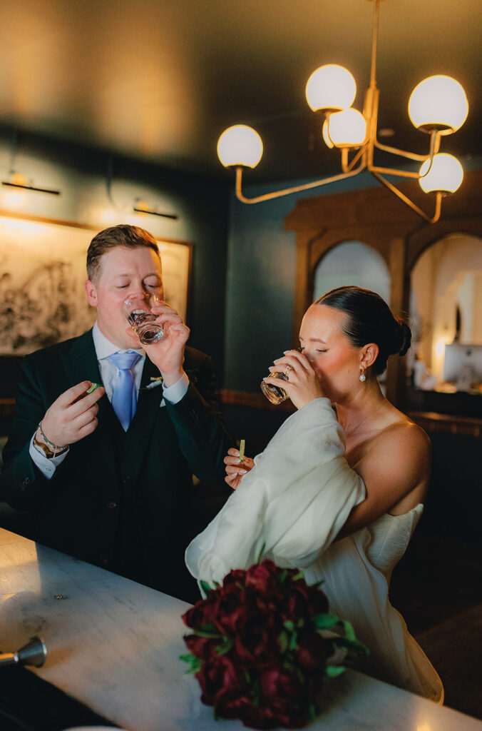 While we’re on the topic of steering clear of holiday decor, the same applies to your color palette. Holiday weddings don’t have to mean bright red and green everywhere. Try layering deep jewel tones, winter whites, gold accents, or muted greens and burgundy for a more refined take on the seasonal colors. These colors photograph beautifully and add a sense of depth and richness that still feels festive without feeling overdone.